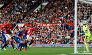 Pogba’s goal was another unchallenged header from the same route and, by half-time, Leicester’s defenders looked in need of smelling salts. Kasper Schmeichel was badly missed but his deputy, Ron-Robert Zieler, could not be held accountable for the kind of generous defending that left the team so vulnerable.